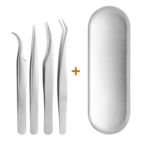 4PCS Lash Tweezers Set – False Eyelash Extension Tools & Eyebrow Kit